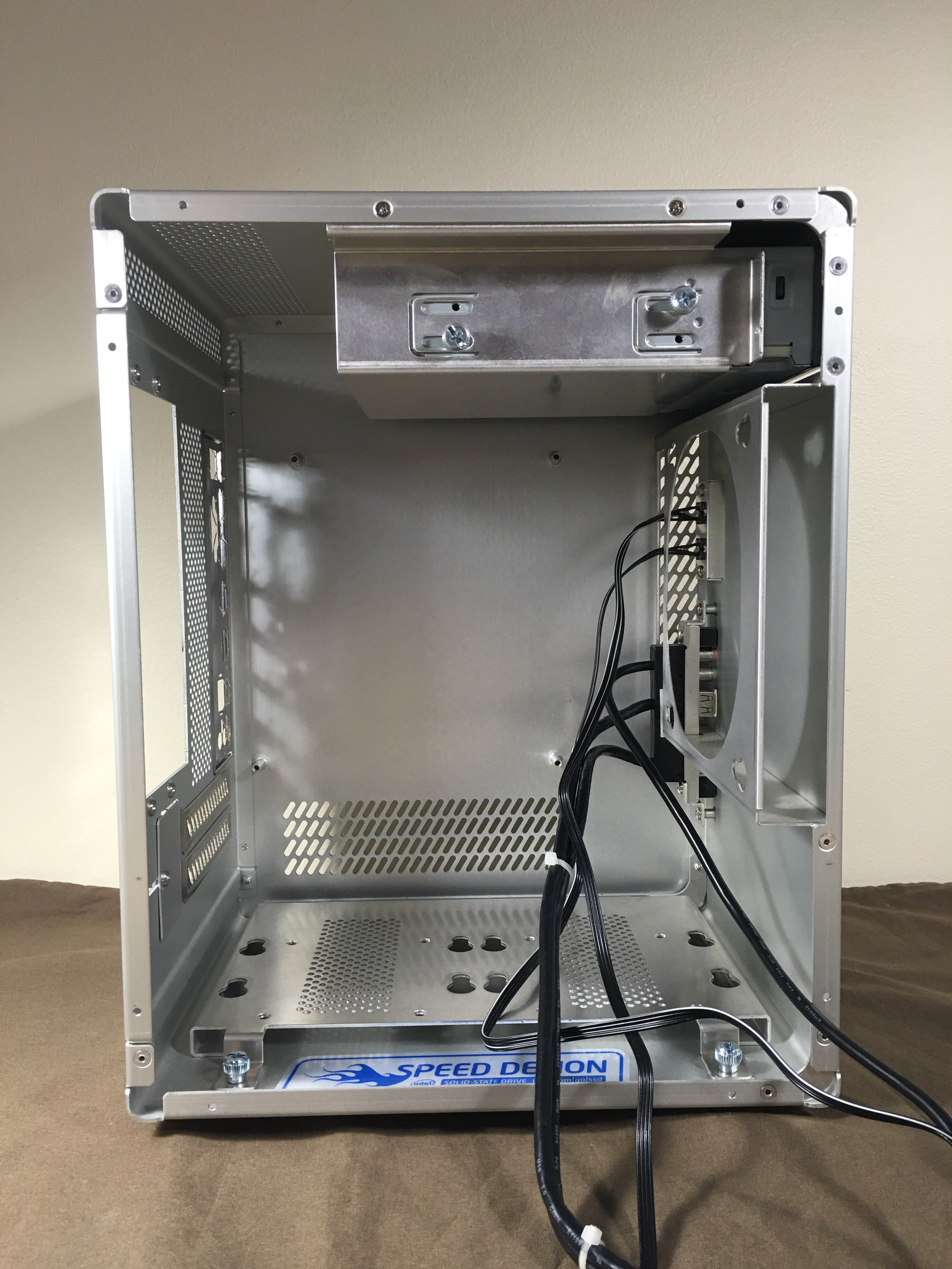 You might wonder, though, how this cooler fits in the PC-Q11 because the AXP-200 heatsink is 60mm thick and the fan is 25mm thick while the PC-Q11 only allows 80mm for CPU coolers. The answer is a SFX-L, as opposed to ATX, power supply unit.